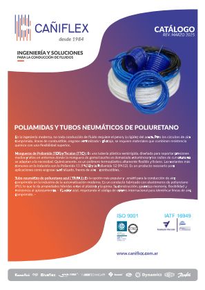 Mangueras de Poliamida (TGF) y Tecalan (TTC) : Es una tubería plástica semirrígida, diseñada para soportar presiones medias y altas en entornos donde la manguera de goma/caucho es demasiado voluminosa y los radios de curvatura no se adaptan a la necesidad. Químicamente, es un polímero termoplástico altamente flexible y liviano. Las variantes más comunes en la industria son la Poliamida 11 (PA11) y la Poliamida 12 (PA12). Es un producto necesario para aplicaciones como engrase centralizado, frenos de aire y combustibles. -