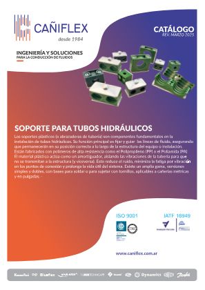 Los soportes plásticos (o abrazaderas de tubería) son componentes fundamentales en la instalación de tubos hidráulicos. Su función principal es fijar y guiar las líneas de fluido, asegurando que permanezcan en su posición correcta a lo largo de la estructura del equipo o instalación. Están fabricados con polímeros de alta resistencia como el Polipropileno (PP) o el Poliamida (PA). El material plástico actúa como un amortiguador, aislando las vibraciones de la tubería para que no se transmitan a la estructura (y viceversa). Esto reduce el ruido, minimiza la fatiga por vibración en los puntos de conexión y prolonga la vida útil del sistema. Existe una amplia gama, versiones simples y dobles, con bases para soldar o para sujetar con tornillos, aplicables a cañerías métricas y en pulgadas. -