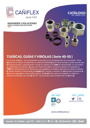 Las tuercas y virolas, son componentes esenciales de los acoplamientos de compresión. Estos accesorios se utilizan ampliamente en sistemas hidráulicos y en líneas de baja a media presión que transportan fluidos, especialmente cuando se requiere una conexión desmontable, sin necesidad de soldar ni roscar tuberías. Aunque son fáciles de utilizar, las tuercas deben ser instaladas al TORQUE especificado por el fabricante, para garantizar un sellado adecuado sin dañar la tubería. Su diseño permite el desmontaje y la re conexión, aunque a menudo se recomienda reemplazar la virola para asegurar un nuevo sello perfecto. En lo referido a guías de respaldo, es utilizada en tuberías construidas con asiento JIC 37°, funcionando como componente de refuerzo.